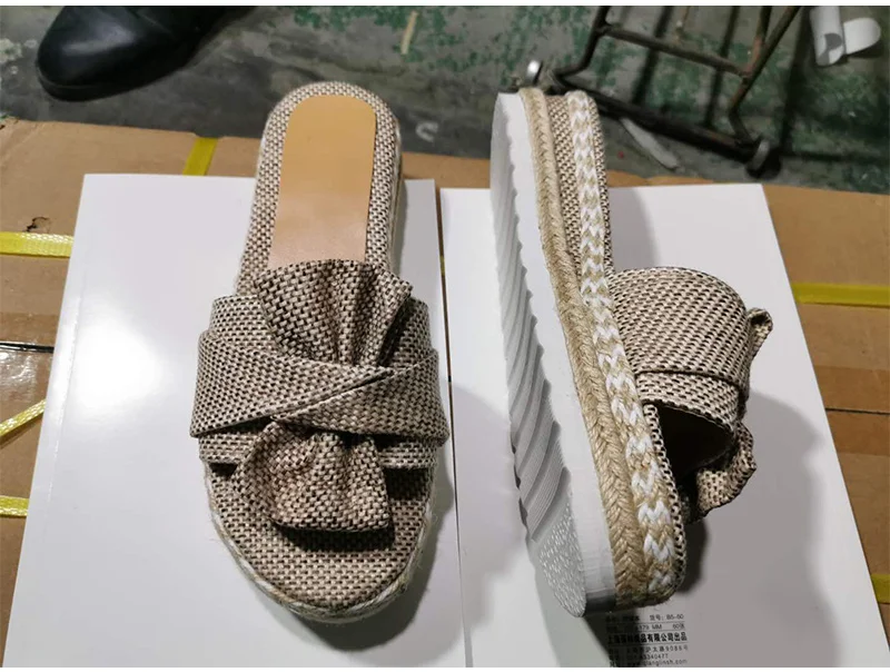 Сандалии с бантом, соломенные шлепанцы большого размера