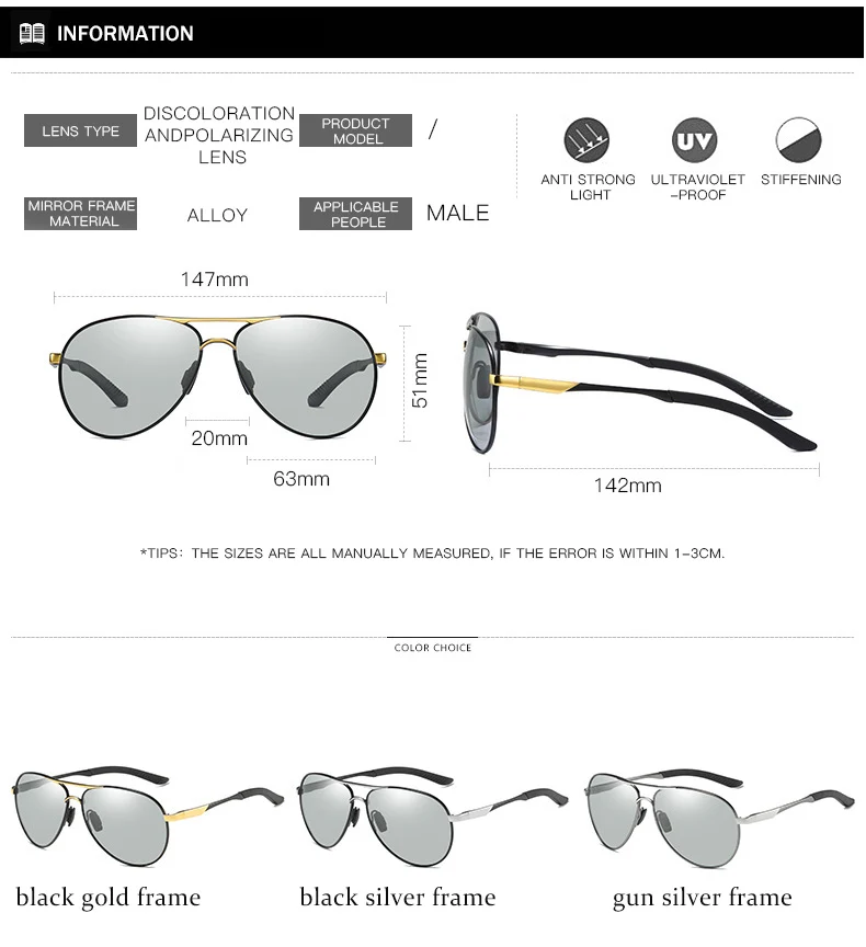 Солнцезащитные очки-авиаторы LIOUMO с фотохромными линзами для мужч...