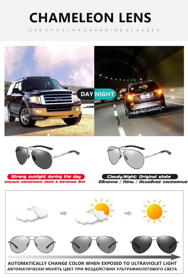 Солнцезащитные очки-хамелеоны для мужчин и женщин, поляризационные ...