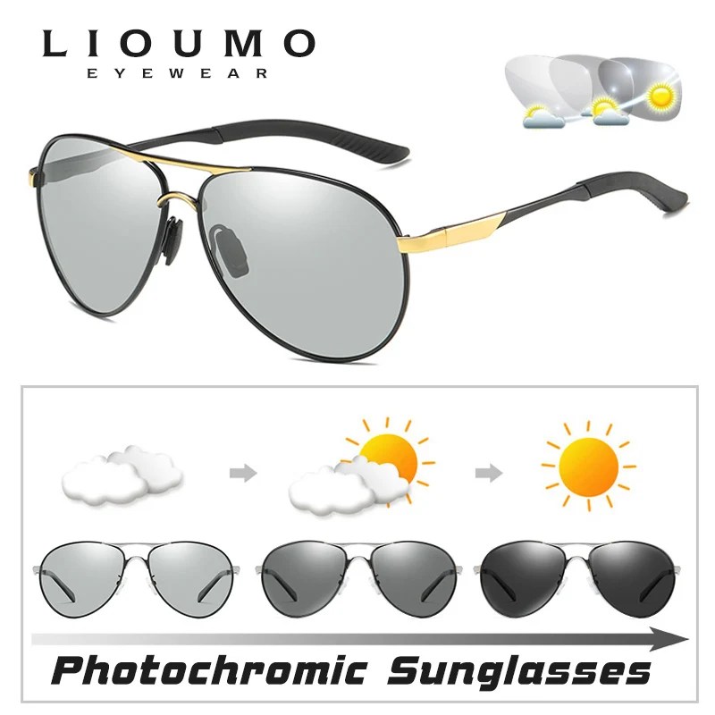Очки-авиаторы LIOUMO поляризационные для мужчин и женщин, фотохромные солнцезащитные аксессуары с умными изменениями цвета