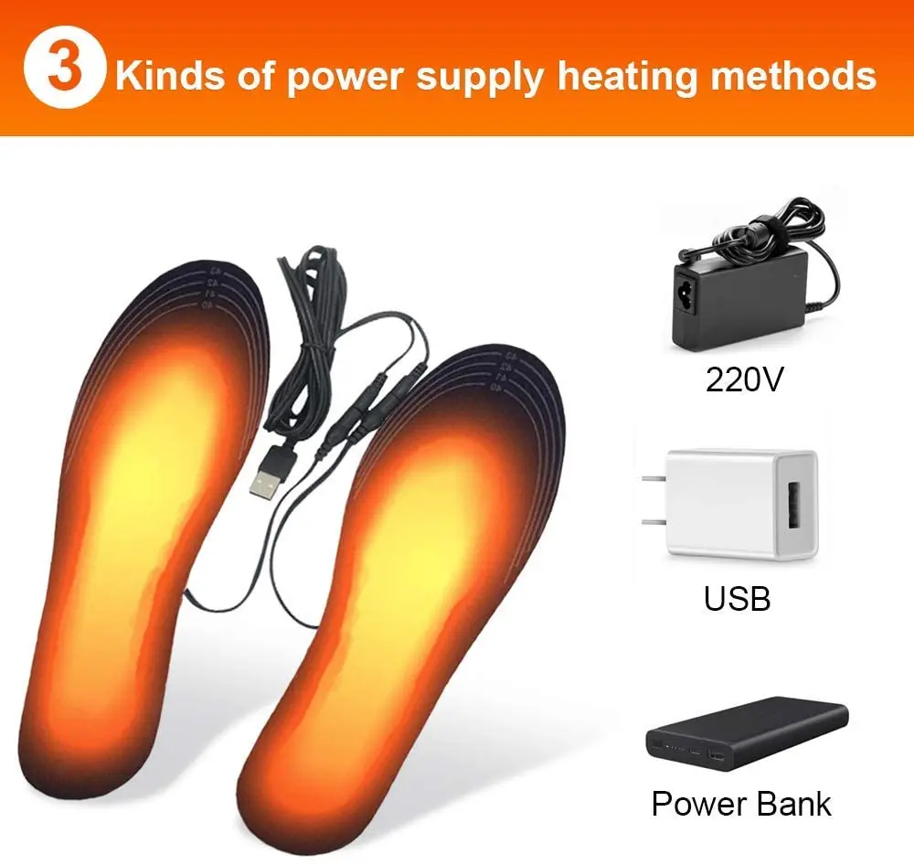 Стельки унисекс с электрическим подогревом, с USB-разъемом, Зимние Стельки для спорта на открытом воздухе, согревающие ножки, стельки для утепления