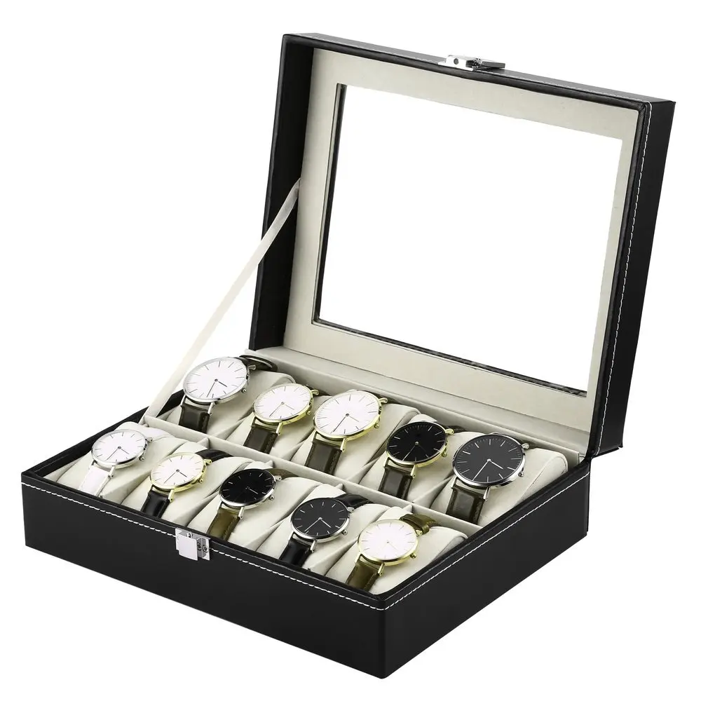 Кожаная шкатулка для хранения часов с 2610 отделениями, органайзер, новый держатель для мужских механических часов, черный чехол для ювелирных изделий, подарочные коробки, чехол