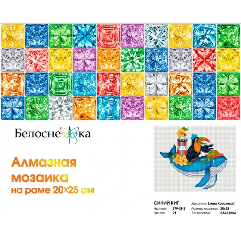"Синий кит " Алмазная мозаика на подрамнике 20*25. Белоснежка. 579-ST-S