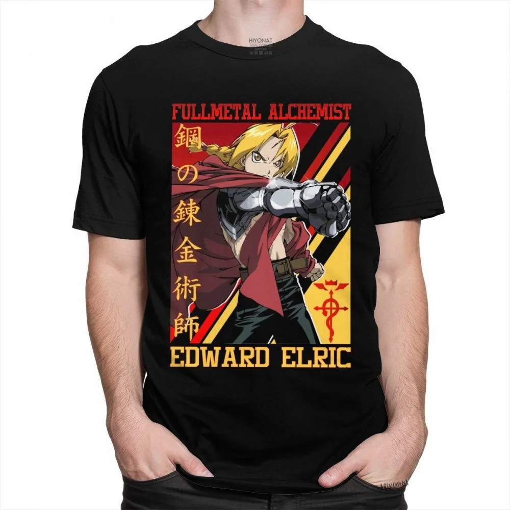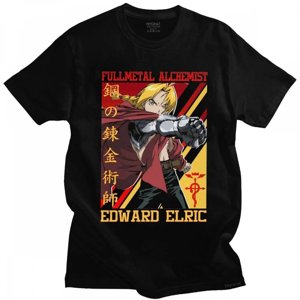 Стальной футболка с рисунком Алхимик; Ботинки в стиле Эдвард Элрик футболка Для мужчин натуральный хлопок братьев аниме Fma футболка с короткими рукавами с рисунком из Аниме Манга футболка подарок