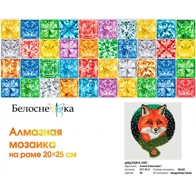 "Дядушка лис" Алмазная мозаика на подрамнике 20*20. Белоснежка. 571-ST-S