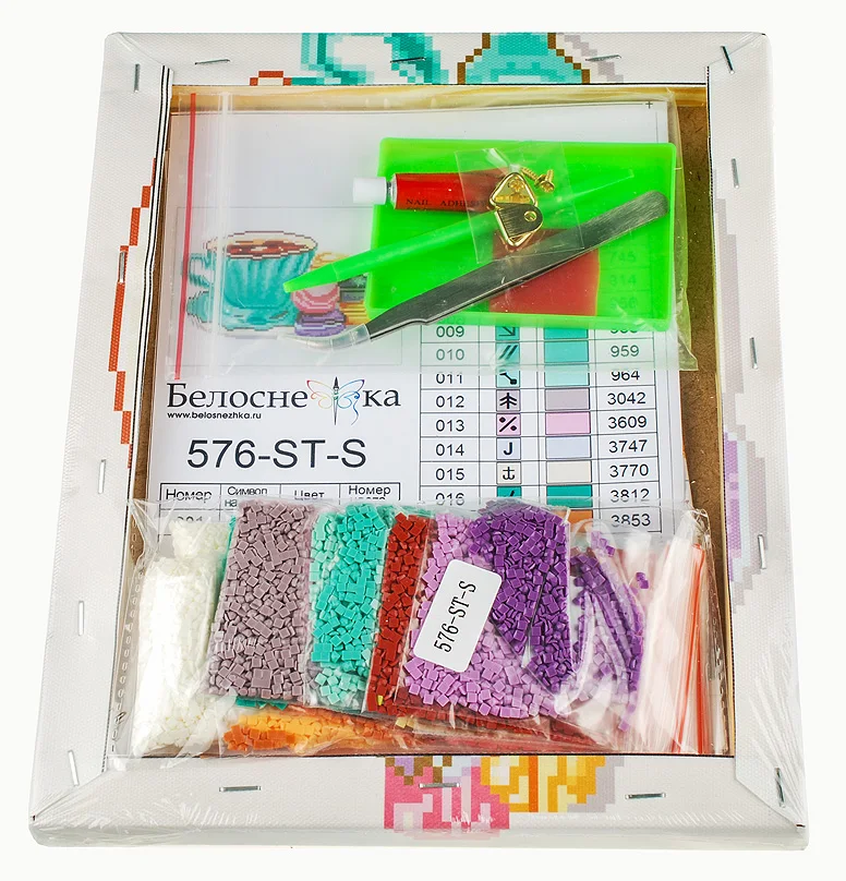 Для реализации вашего процесса мы подготовили холст в формате 20*25 см., с нанесённой цветной схемой и покрывающим клеевым слоем.