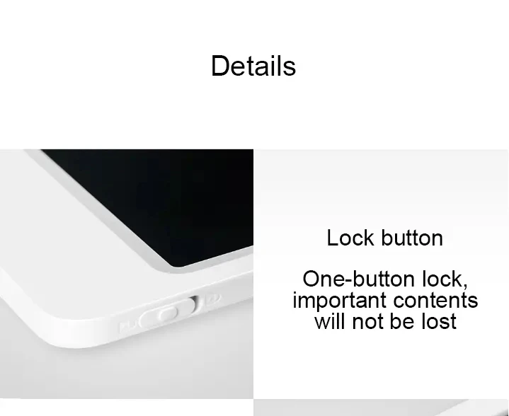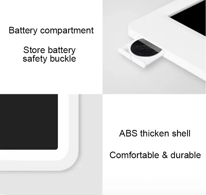 ★Индивидуальная ЖК-пленка, четкий почерк. ★Высокочувствительная технология определения давления, толщина почерка меняется с силой. ★Одна кнопка очистки, низкое энергопотребление, длительный срок службы батареи. ★Ультрамагнитный стилус-светильник для более удобного хранения ★Уникальный дизайн ручки подиума, удобная ручка ★Супер стальная головка ручки, гладкая и прочная ★Ультратонкий корпус, легко носить с собой ★Офисные обсуждения, эффективные и экономичные ★Доска для семейных сообщений, чтобы улучшить счастье