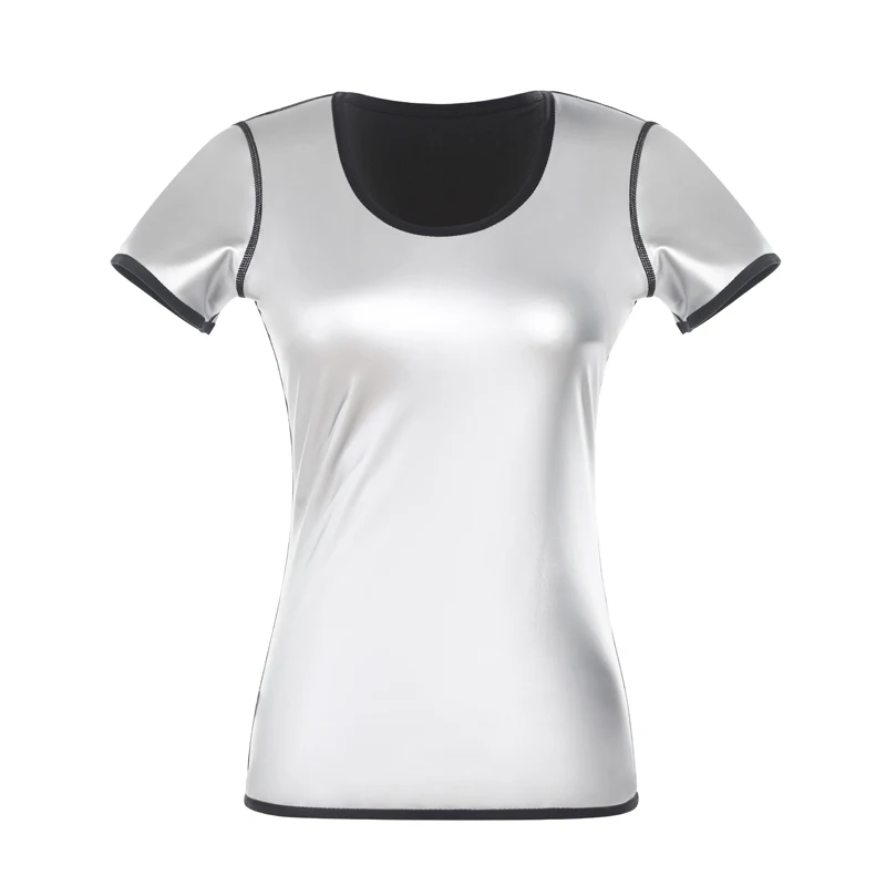 Женский костюм-сауна, новая облегающая Однотонная футболка для похудения, Черная Спортивная рубашка для фитнеса, шейпер с круглым вырезом, женские топы, спортивный костюм