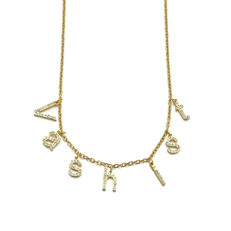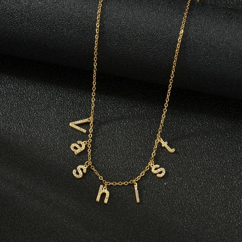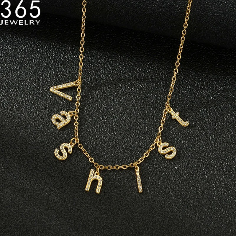 Ожерелье с именем на заказ, колье с яркими бриллиантами, ожерелья с табличкой, ожерелья из нержавеющей стали, персонализированные ювелирные ожерелья