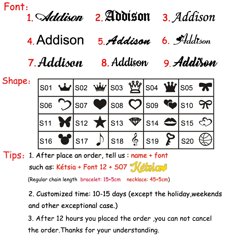 1. После размещения заказа сообщите нам: Имя + шрифт