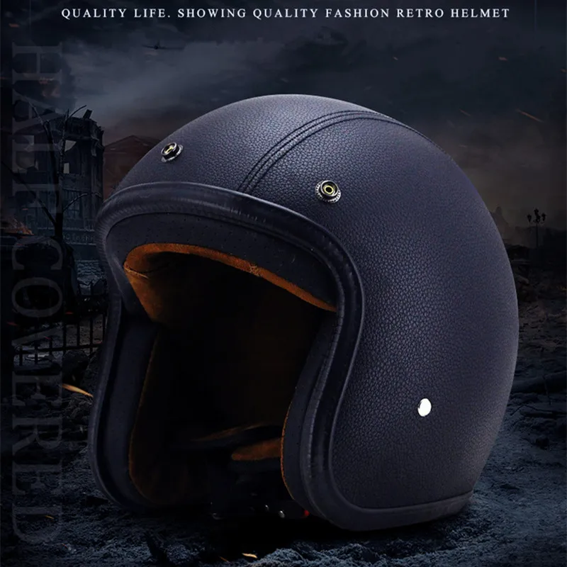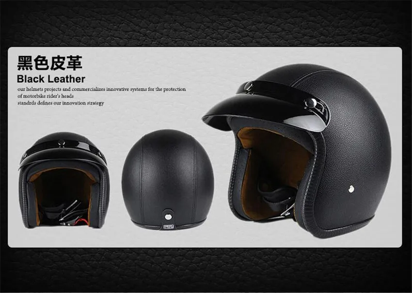 Бесплатная доставка шлемы из искусственной кожи 34 Мотоцикл Чоппер велосипедный шлем открытое лицо винтажный мотоциклетный шлем черная кожа