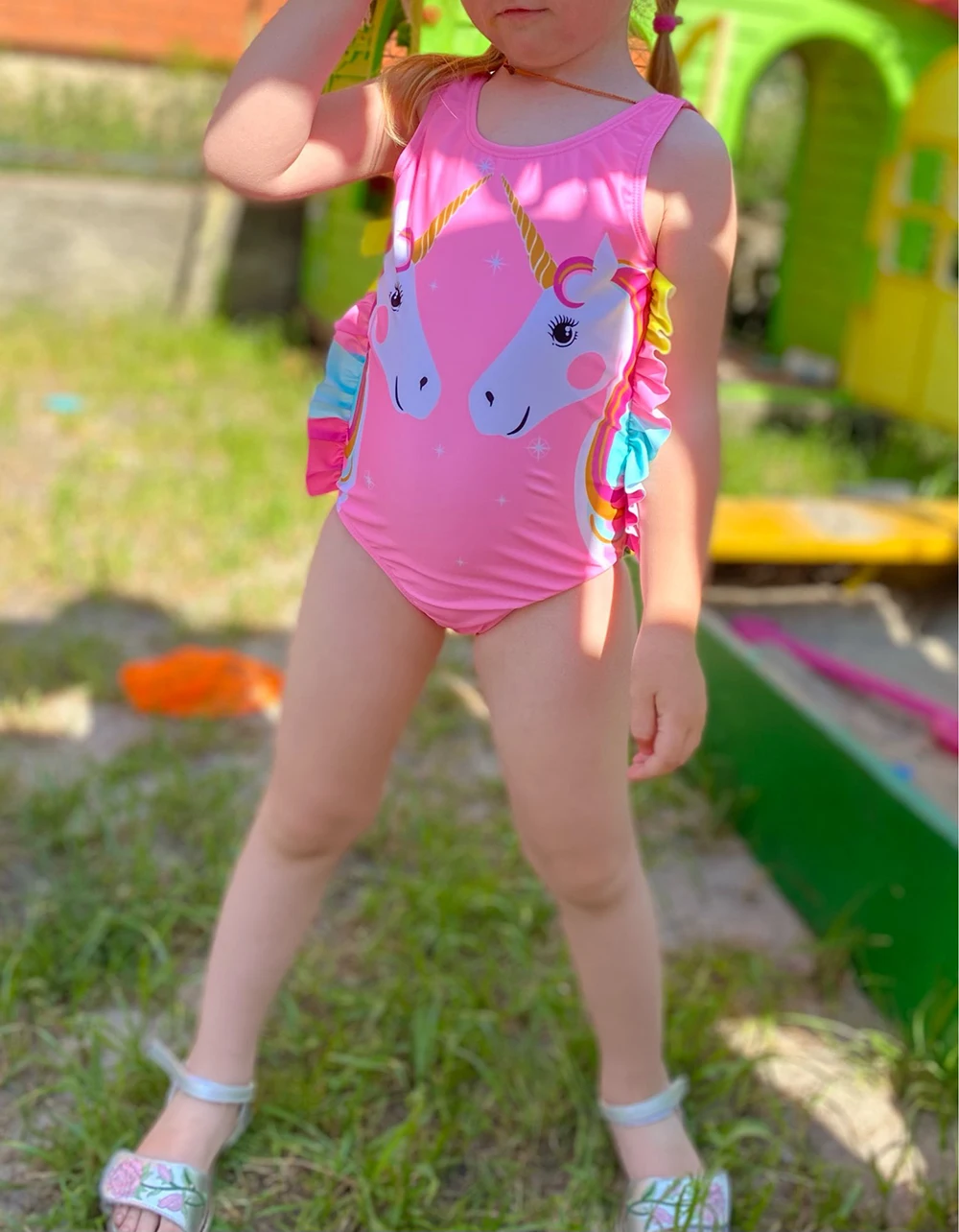 Купальник От 2 до 10 лет для девочек, слитный купальный костюм с мультяшным рисунком