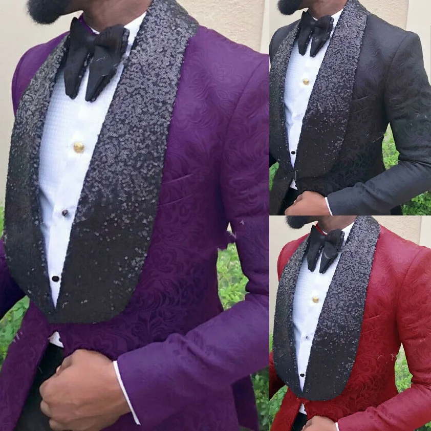 Деловой фиолетовый жаккардовый мужской костюм Пейсли для свадьбы смокинг с блестками шаль с лацканами 6 цветов индивидуальная рабочая одежда цельный пиджак