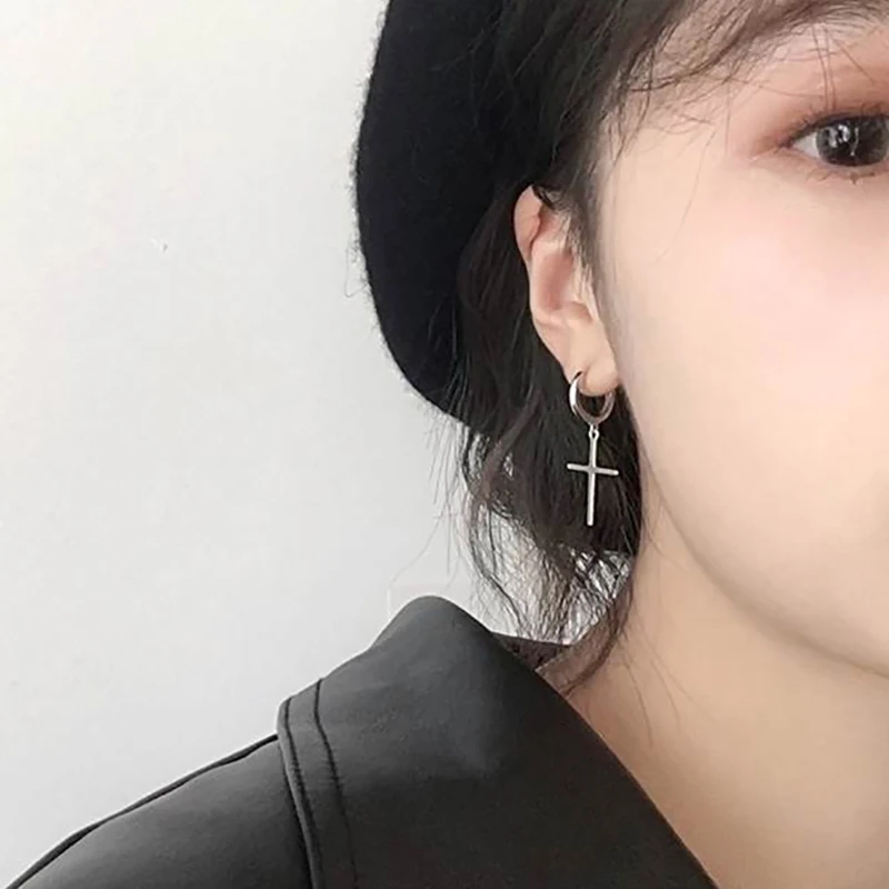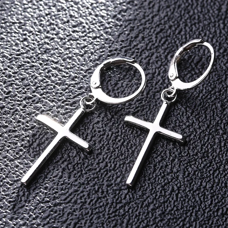 Серьги-гвоздики унисекс, металлические, с подвесками в виде креста, 1 пара