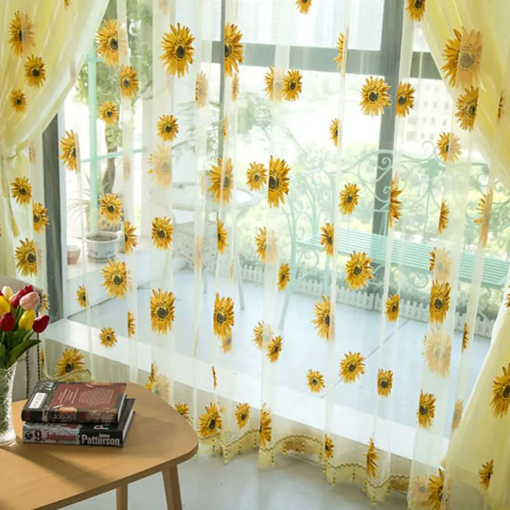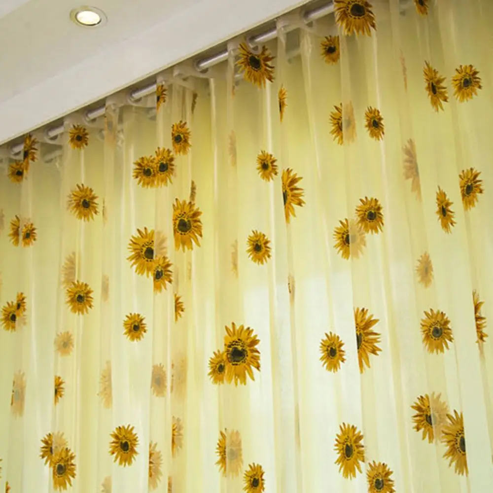 Тюлевая занавеска с рисунком подсолнуха, домашний декор, вуаль для кухни, балкона, комнаты, занавеска для окна с цветочным принтом, Лидер продаж