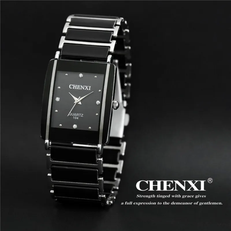 Модные прямоугольные женские часы CHENXI, белые, с имитацией керамики, мужские и женские повседневные кварцевые наручные часы, женские часы