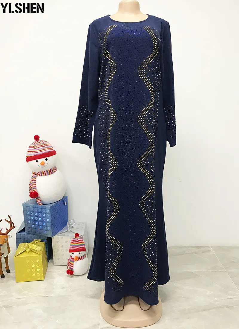 Африканские вечерние длинные макси платья для женщин, вечерние платья, Рождественская Дашики, бриллианты, Африка, одежда размера плюс, мусульманский Халат
