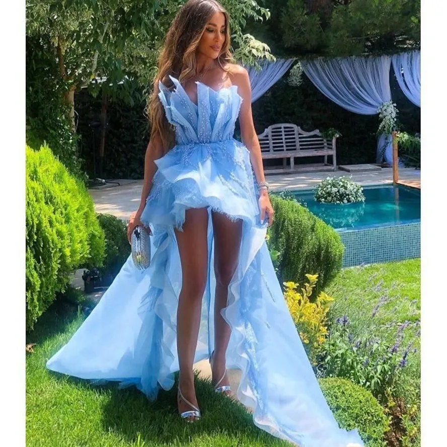 Длинные платья для выпускного, небесно-голубого цвета, с оборками, бисером, с открытыми плечами, с перьями, для официальной вечеринки, 2021