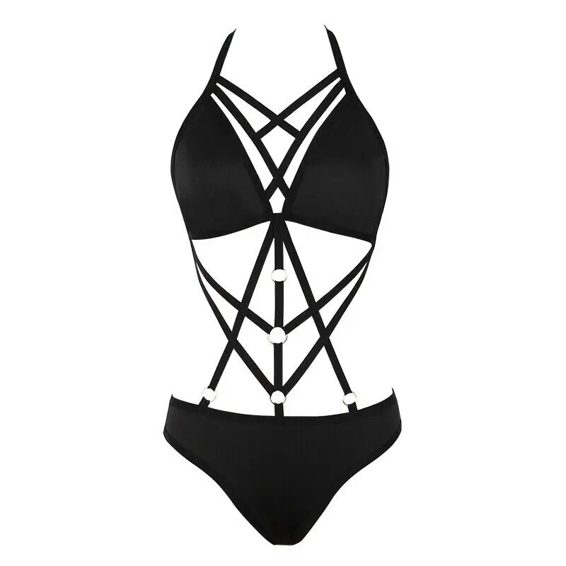 Женский слитный купальник, пикантный женский боди с вырезами, черна...