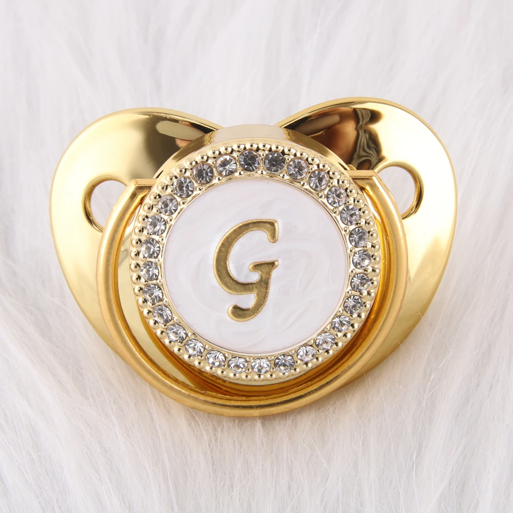 Соска-пустышка для новорожденных, силикон, 26 букв, роскошные золотые, Со стразы, для детей 0-12 месяцев, Соска-пустышка