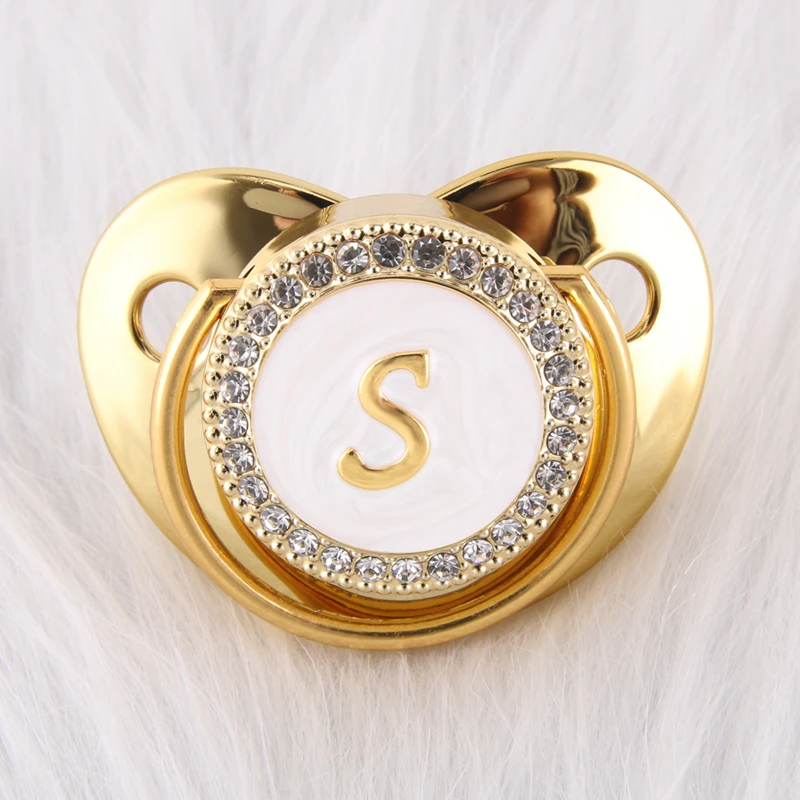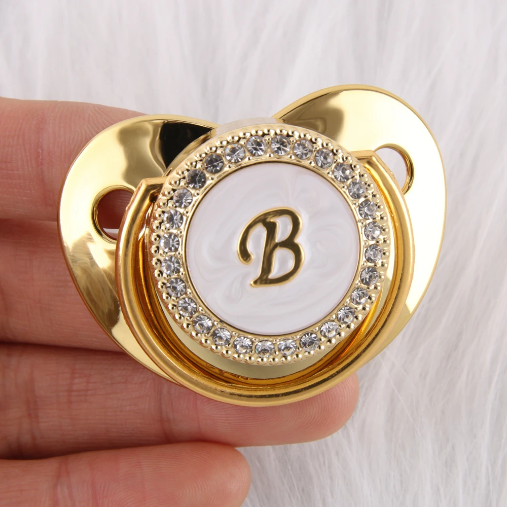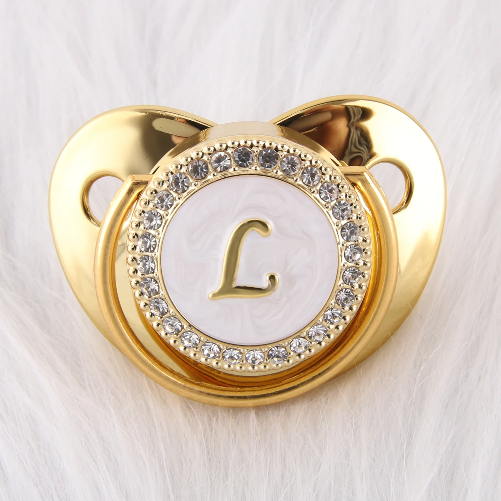 26 букв, Роскошная золотая детская пустышка, стразы, BlingBling, для детей 0-12 месяцев, пустышка для новорожденных, силиконовая соска-пустышка