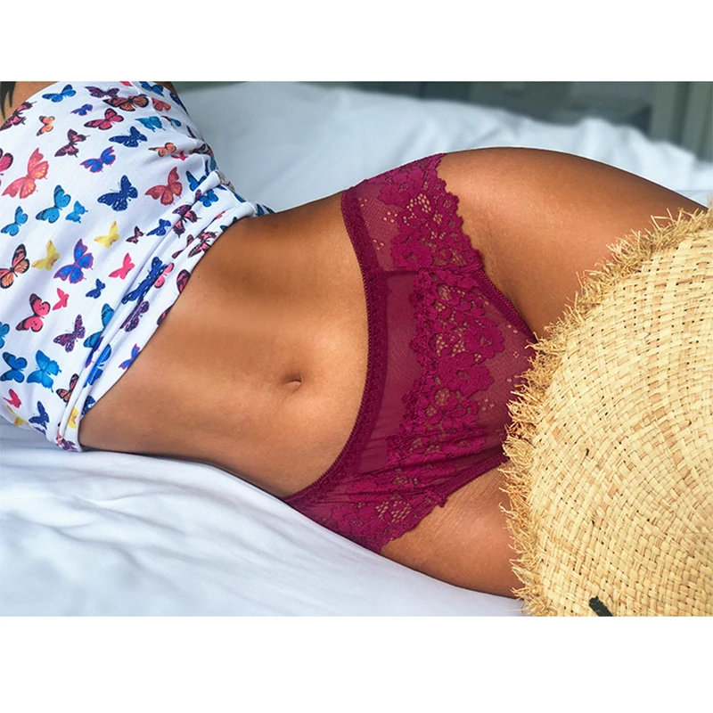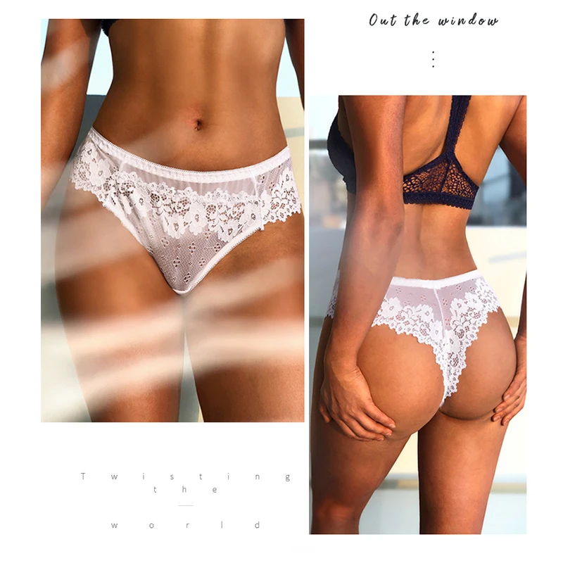 Трусики женские кружевные прозрачные с низкой талией, трусики "Тонг" с вышивкой
