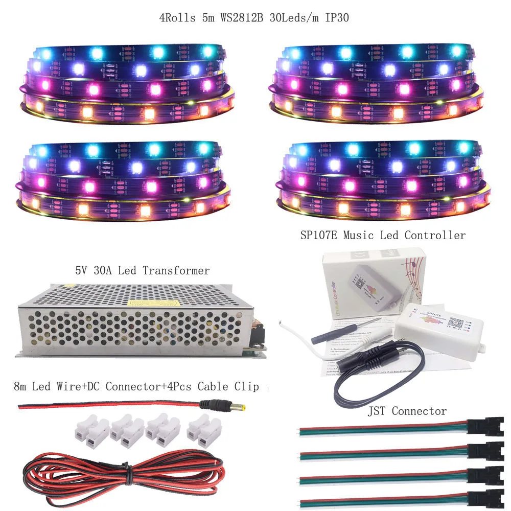 WS2812B WS2812 цветных (RGB) светодиодных лент светильник индивидуально адресуемых IC SP107E работы при прослушивании музыки по Bluetooth ControIIer DC5V трансформатор Мощность SuppIy