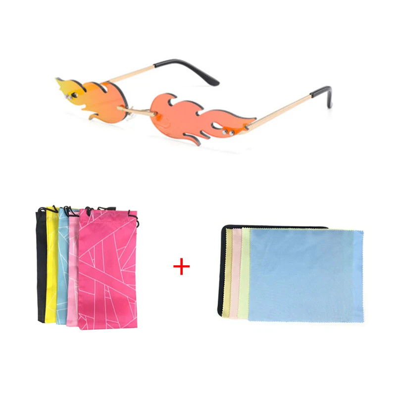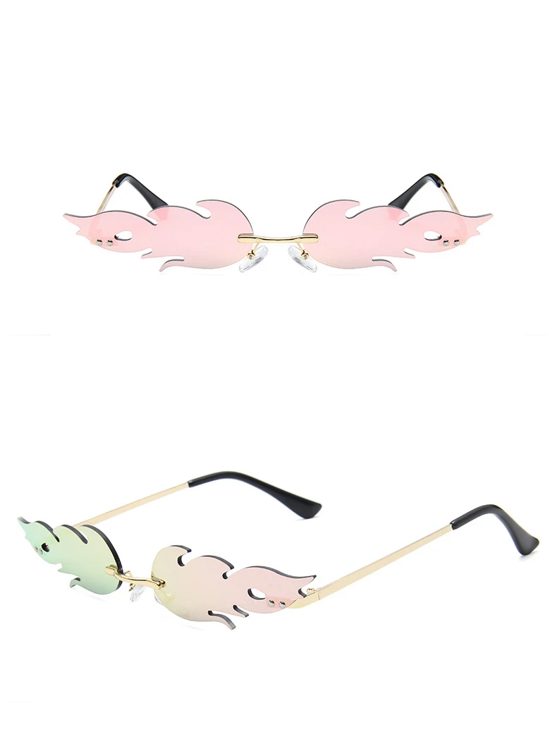 Забавные солнечные очки без оправы с огненным пламенем, женские вол...