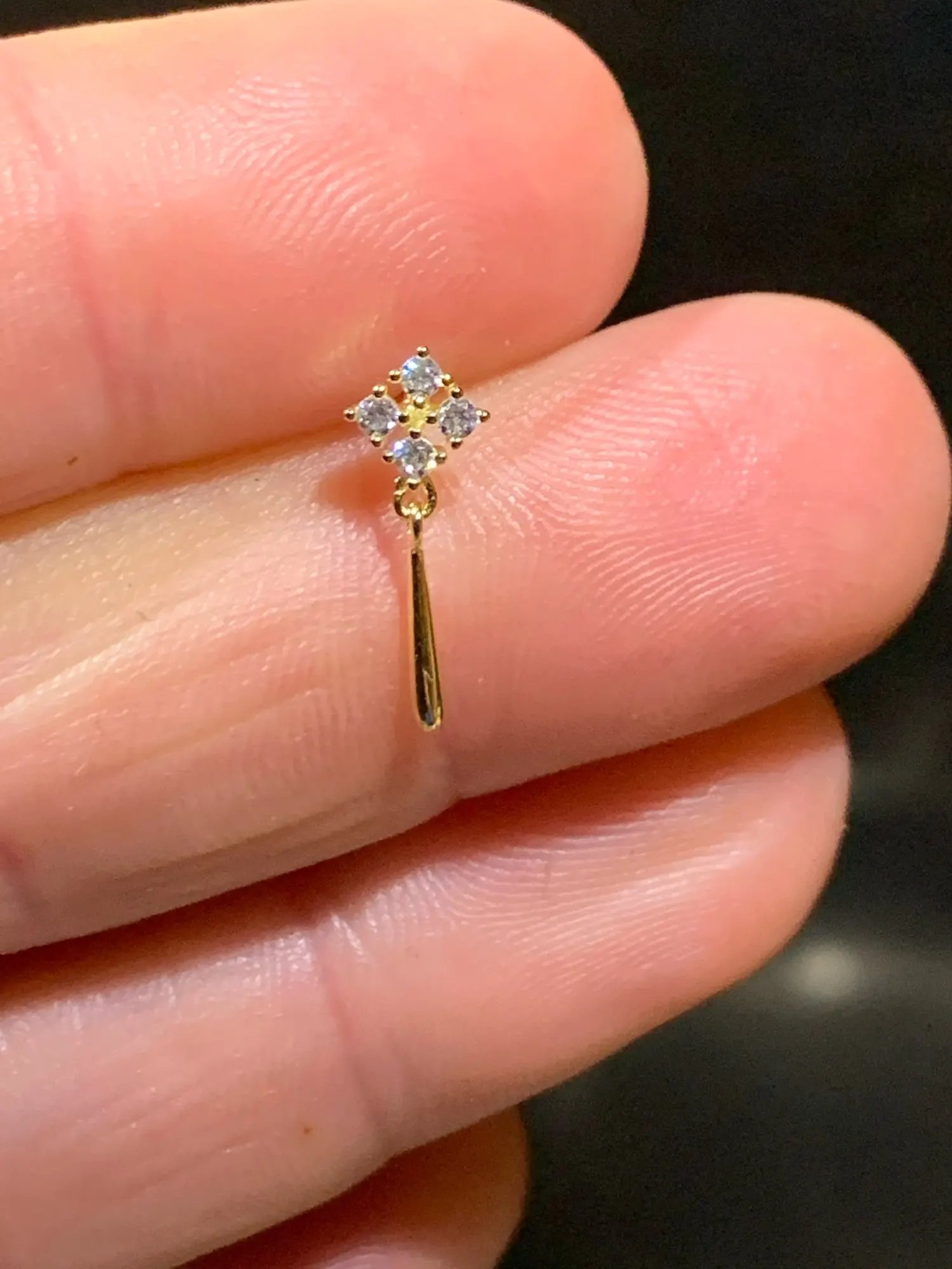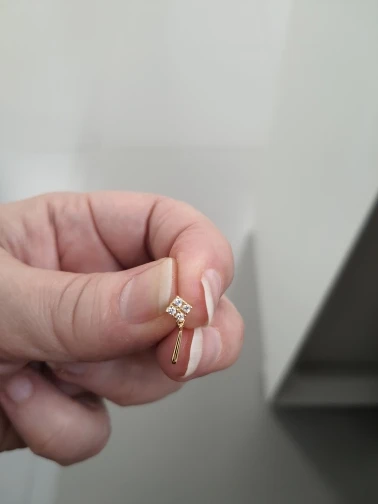 Looks exactly like the pictures. Very pretty and delicate. The post is very soft and the metal butterfly backing is too tight to fit, but they also provided plastic ones. I’ll update if it starts to chip, wear out, or change colour