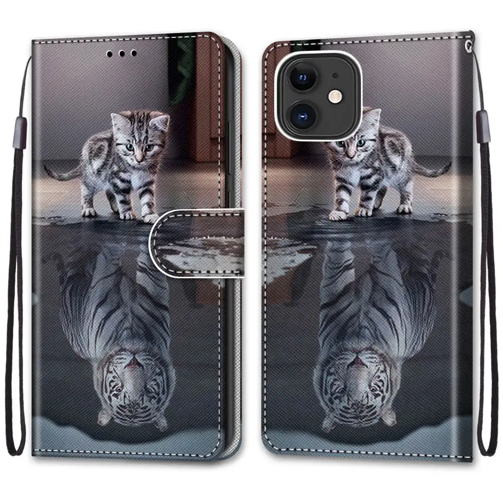 Чехол для телефона Apple iPhone 12 Mini, откидной чехол, кожаный кошелек, Магнитный чехол для Iphone12, Apple 12 Mini, чехол-книжка с аниме, кошка, лиса