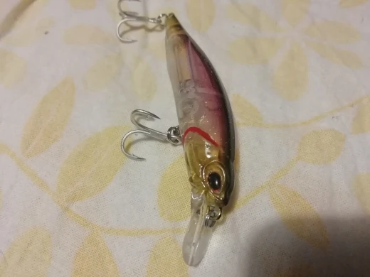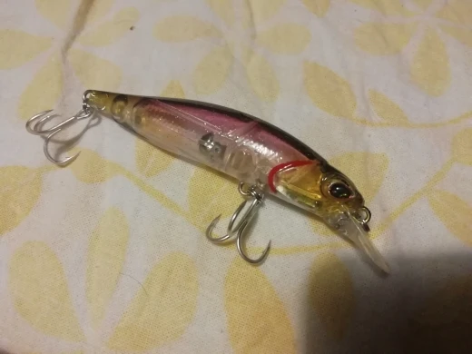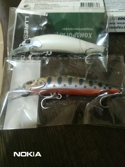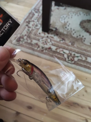 Доставка до МО 3 недели. Воблер качественный. Медленно тонет, чуть головой. Почти суспендер. Тихий. Еле слышно как тарахтят шарики. Думаю проклеивать петли не нужно. Рекомендую начинающим рыбачками.