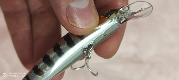 Воблер изготовлен качественно, петли проклеивать не надо, крючки острые, функция дальнего заброса работает, суспендер. Продавцу респект.