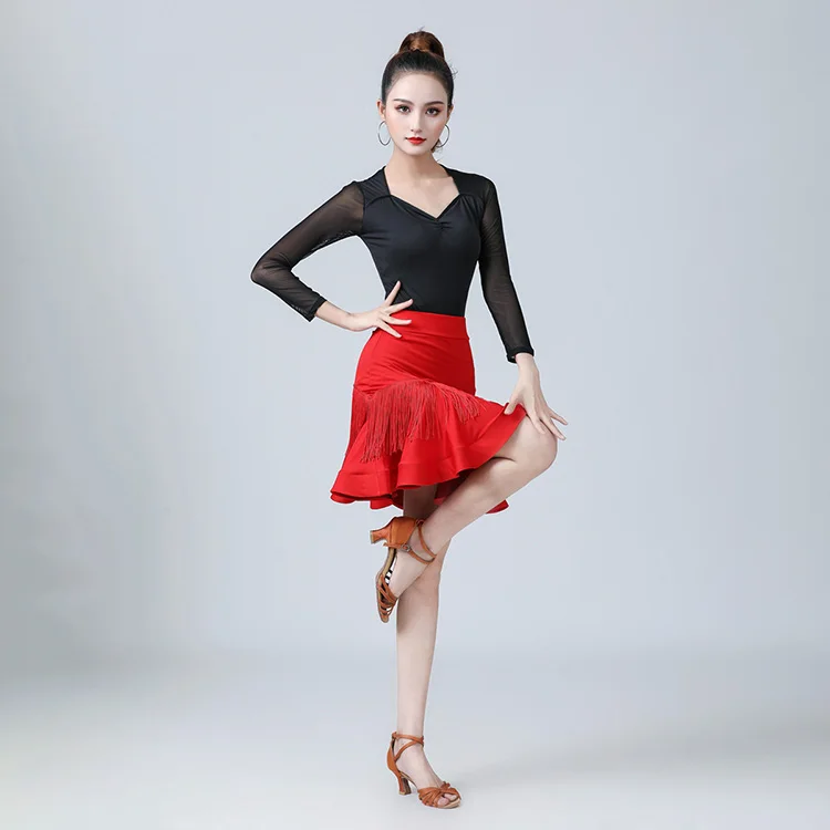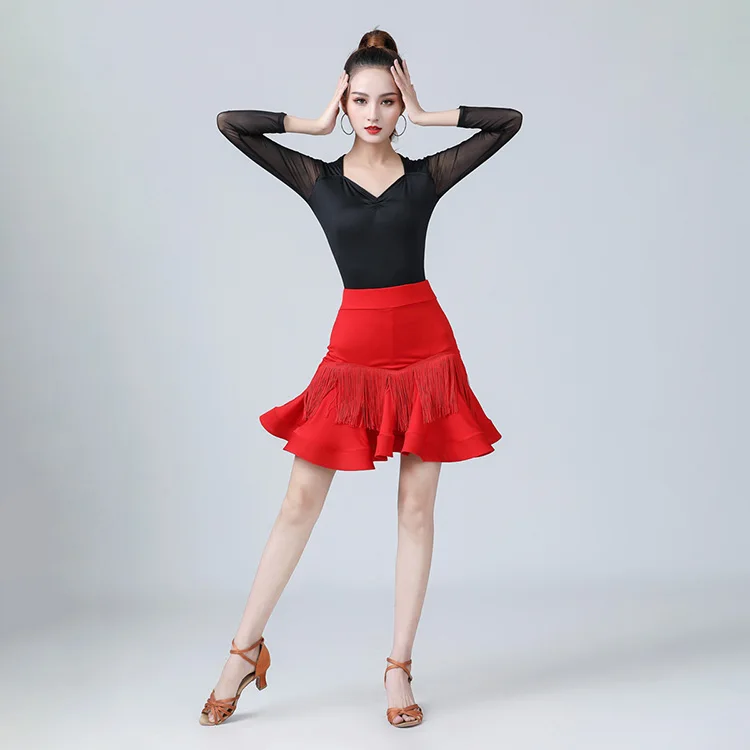 Для латино-американских танцев топы и юбка с длинными рукавами комбинезоны сценическая одежда для бальных танцев для самбы, ча-ча, танцы костюм; Одежда для танцев