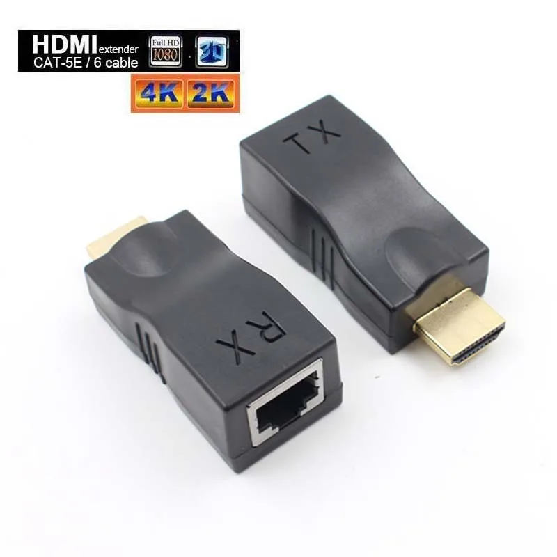 Этот тип HDMI удлинитель от Cat-5e/6 использует однокомпонентный CAT-5e/6 кабель для расширения HDTV дисплея до 30 метров для 1080P. Он не только нарушает ограничение длины передачи кабеля HDMI, но и CAT-5e/6 имеет большую гибкость и удобство в конструкции кабеля