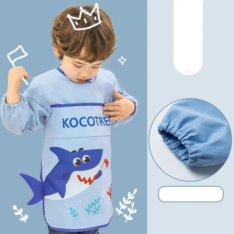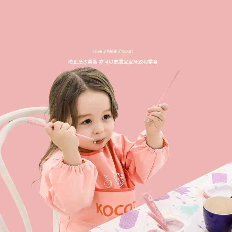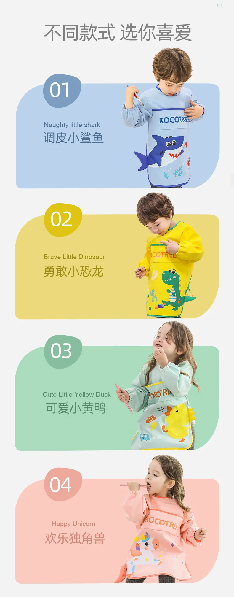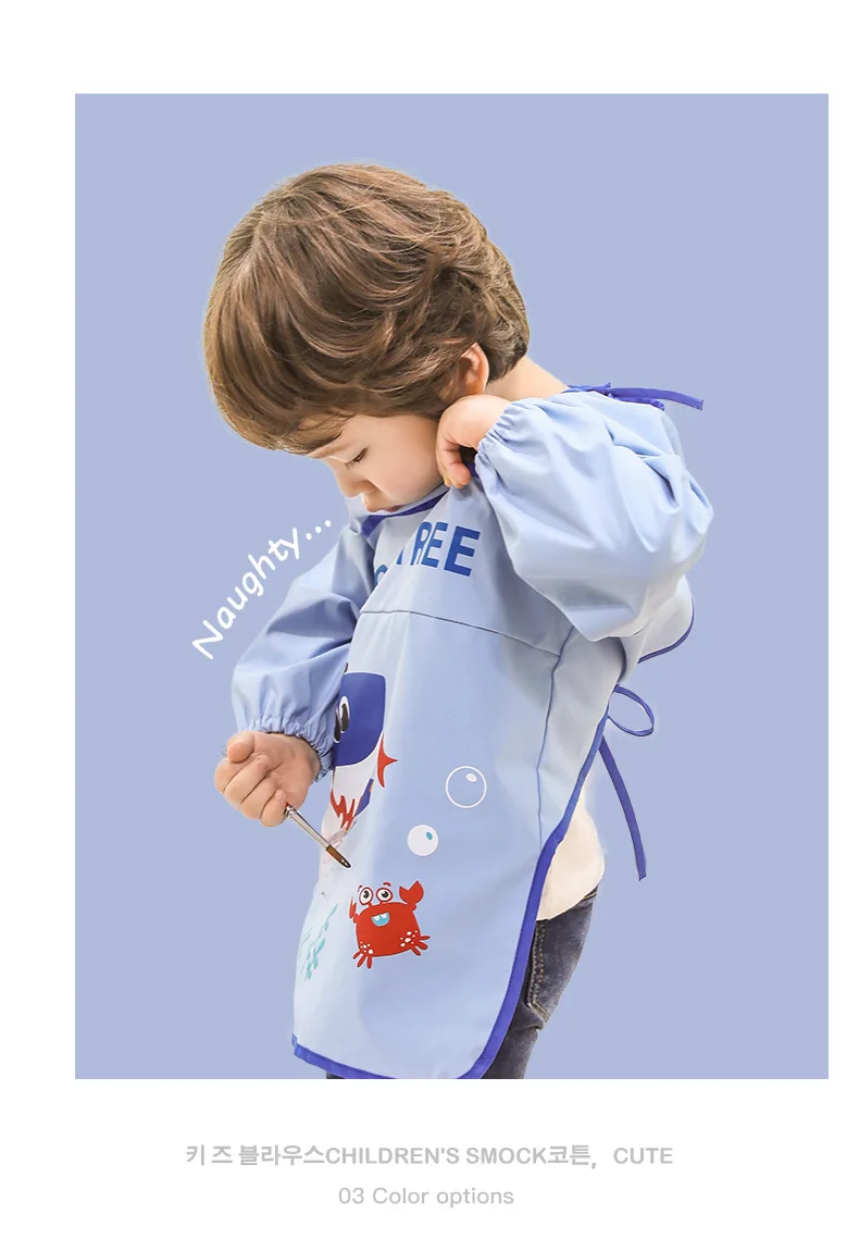 Новые милые детские нагрудники с единорогом, водонепроницаемый нагрудник для младенцев с карманом, Детский фартук с длинными рукавами для рисования, детская ткань для заусенцев