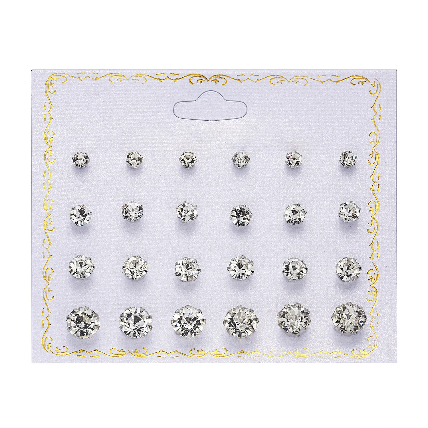 Набор из двенадцати пар серег, серьги с кристаллами и жемчугом, жен...