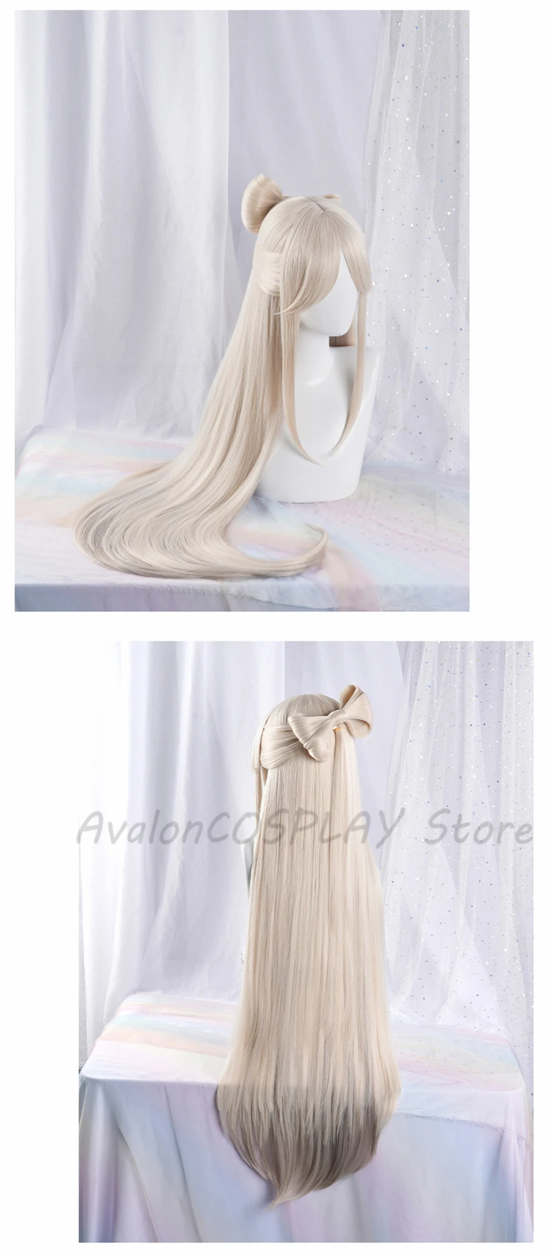 Парики для косплея Genshin Impact Tianquan Ningguang, 120 см, длинный постепенный бежевый 8-образный лук, волосы, Хэллоуин, игра для ролевых игр