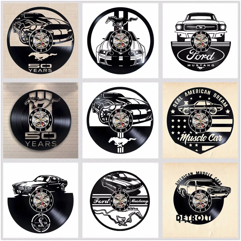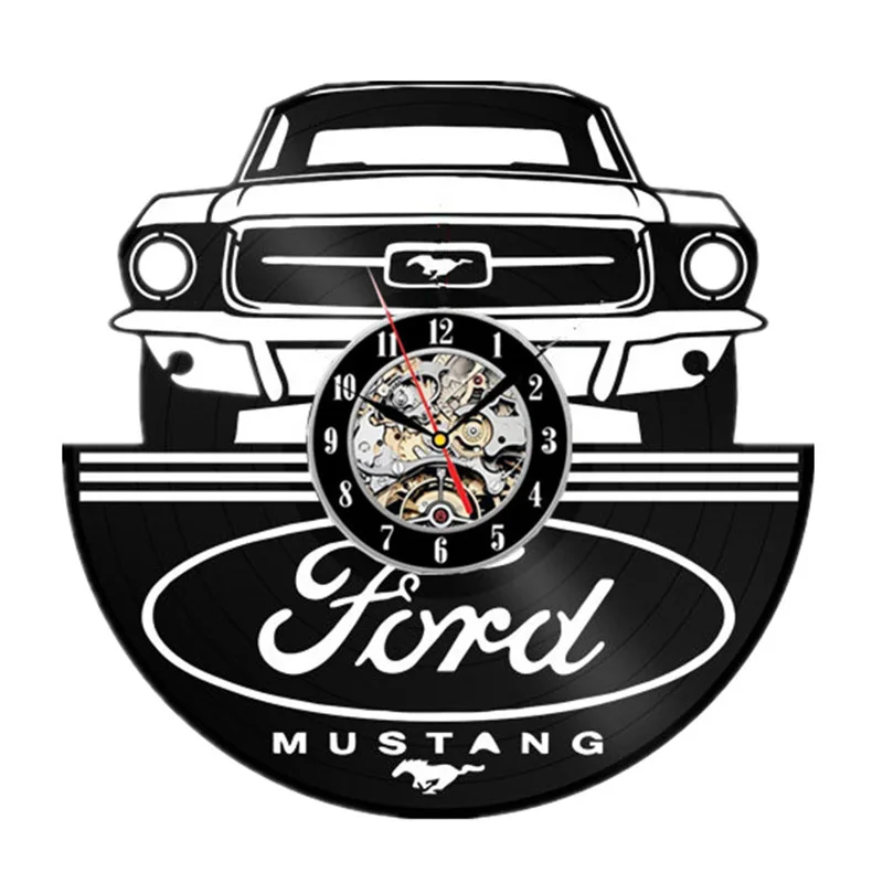 Настенные часы с виниловой пластиной Ford Mustang, современные украшения для гостиной, Подвесные часы с логотипом автомобиля, домашний декор, бесшумные