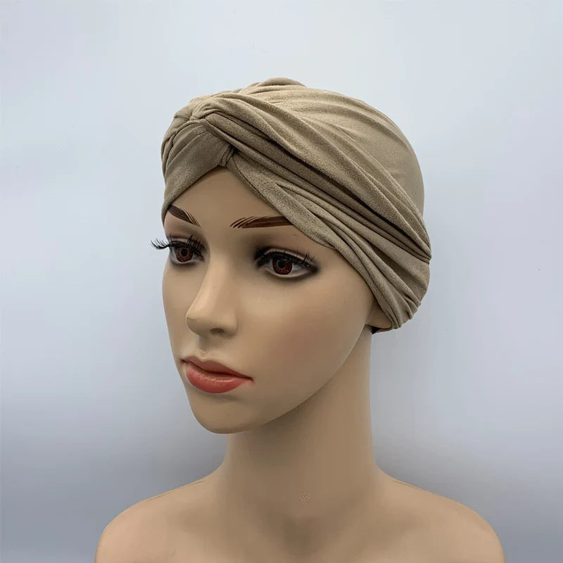 2020 высококачественные замшевые шапки-тюрбаны для женщин, однотонные женские головные повязки, мусульманский тюрбан, стандартный головной платок, шапочка