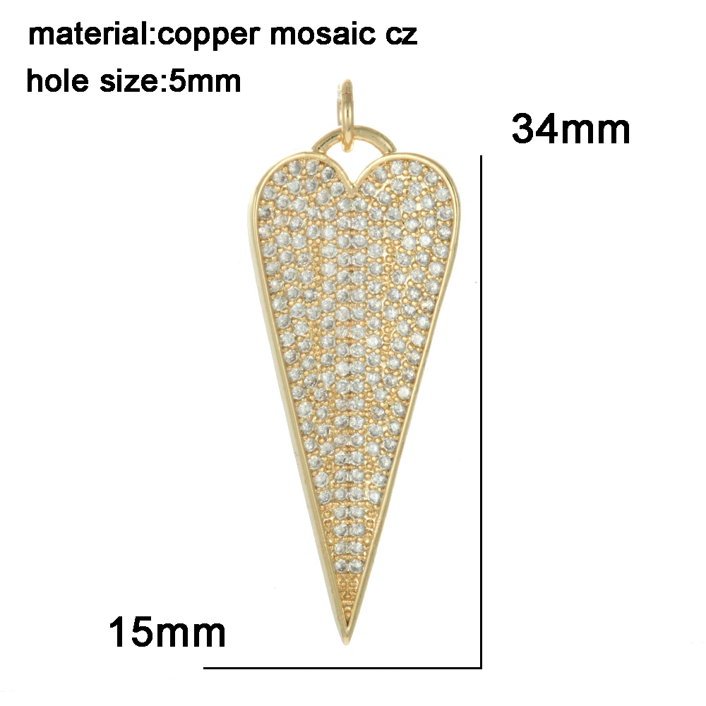 Шармы в форме сердца для изготовления ювелирных изделий, золотой кулон, сделай сам, серьги, ожерелья, браслета, медные аксессуары с фианитами