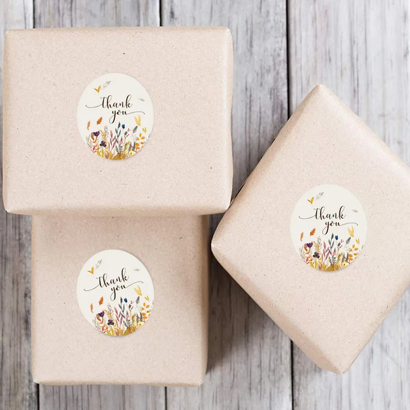 Круглые осенние цветочные наклейки с надписью Thank You, 100-500 шт...