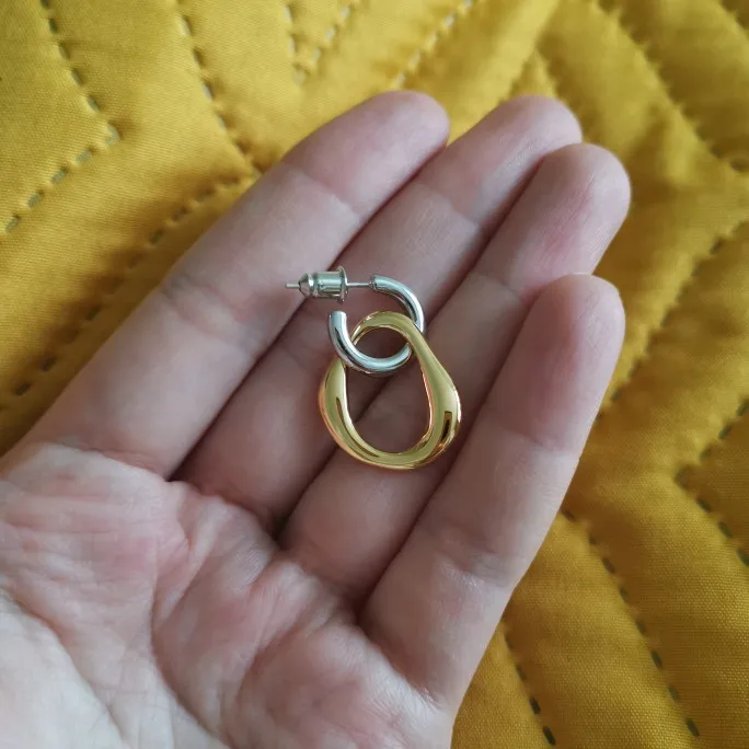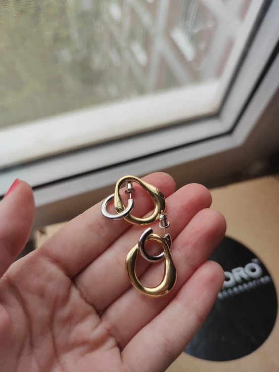 скрьги супер. от италии не отличить. на вид сочетание белого и лимонного золота. в комплекте с кулончиком из 2 сердец очень очень очень. бижутерия класс.