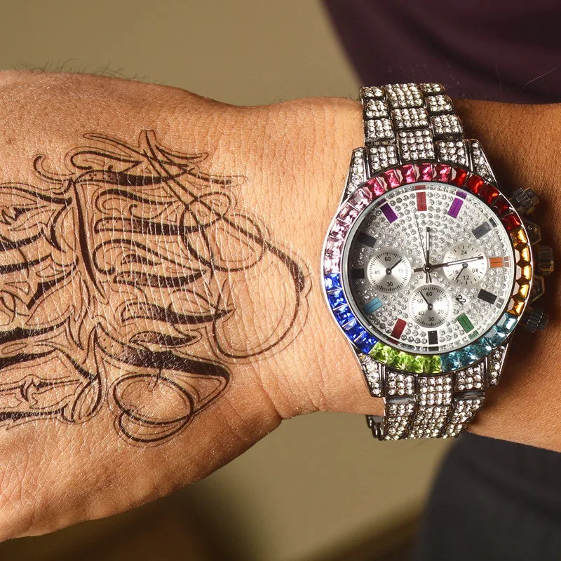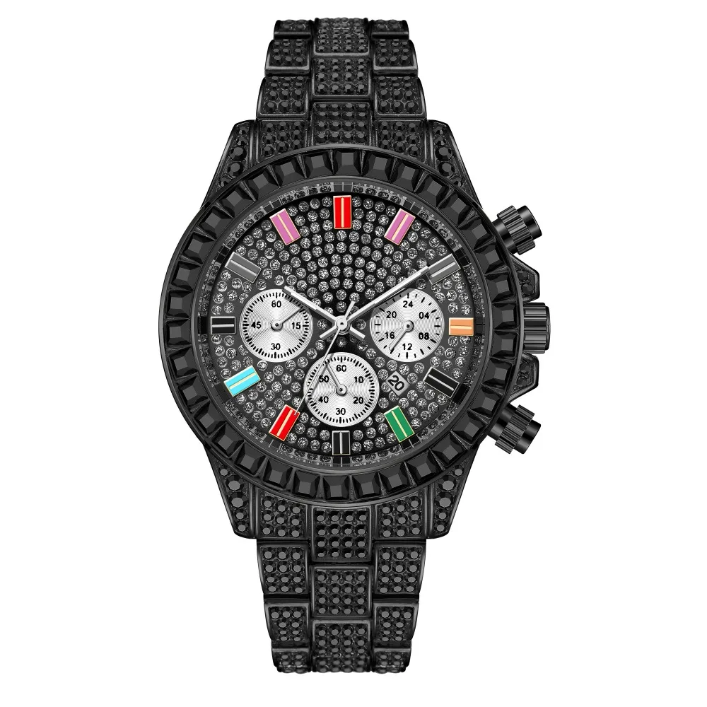 Часы мужские, золотые, со стразами, в стиле хип-хоп, кварцевые, стальные
