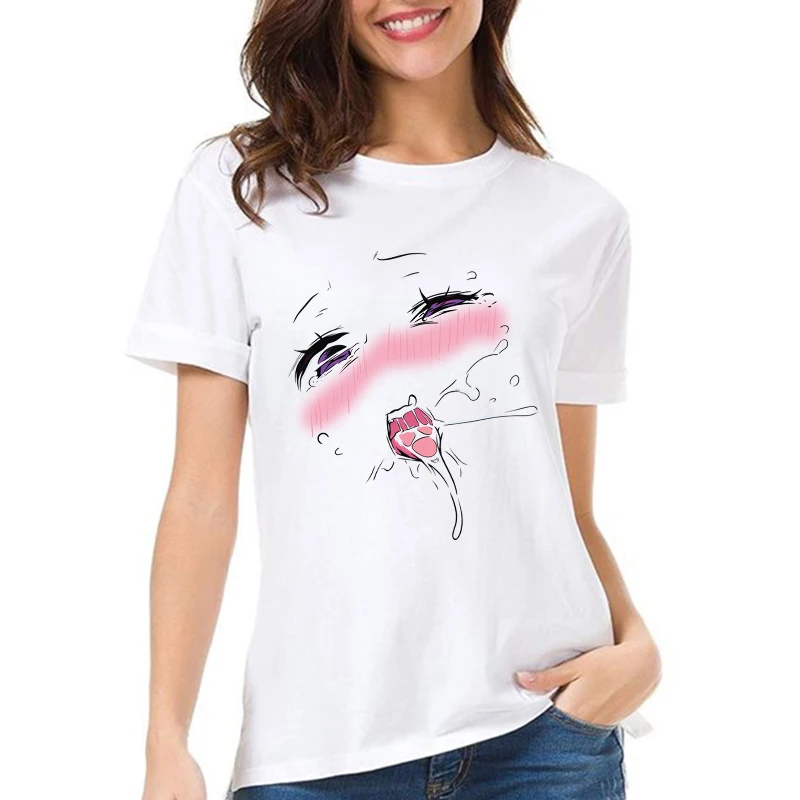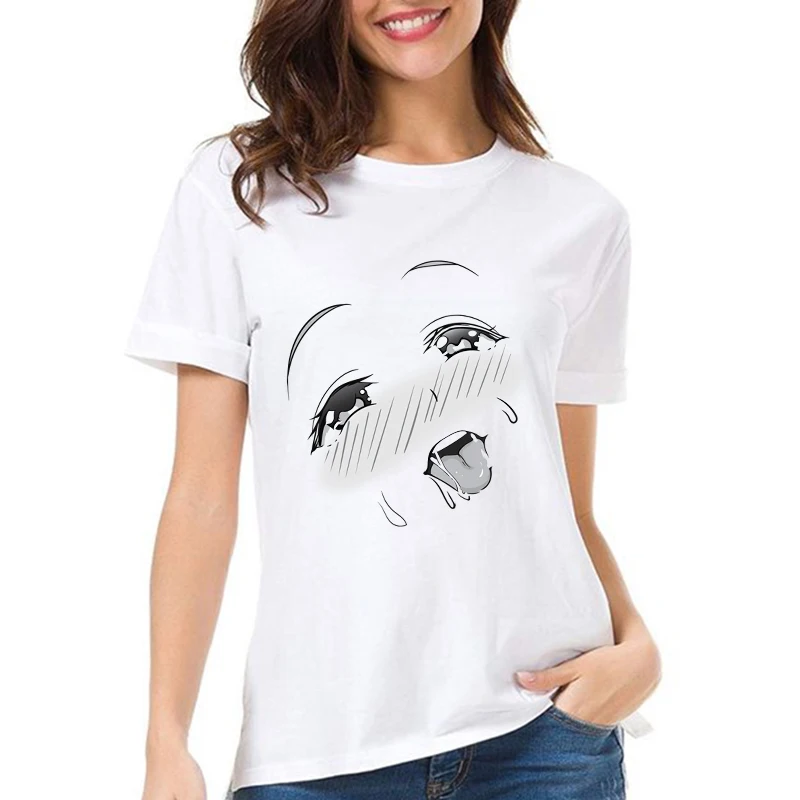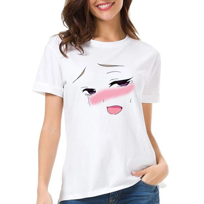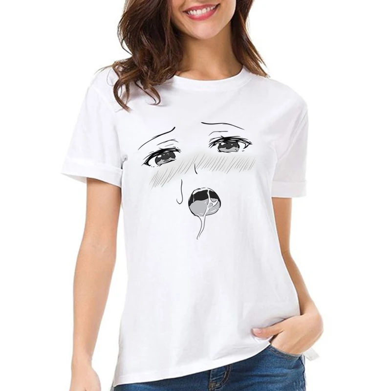 Новая футболка Ahegao face Женская эстетика Kawaii аниме девушка для хентай отаку для молодых японская анимация Сексуальная футболка Waifu culture