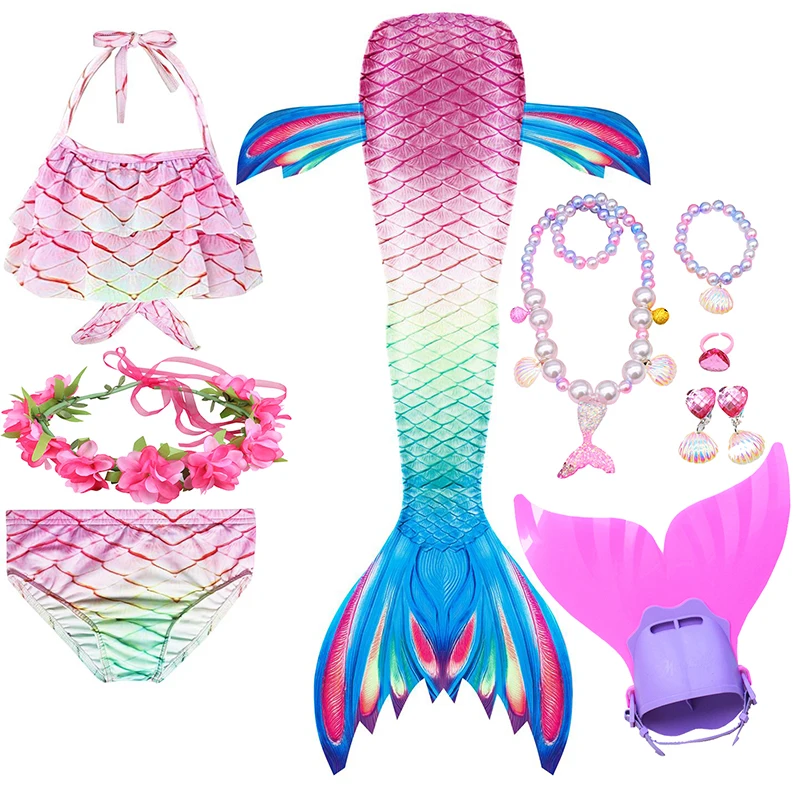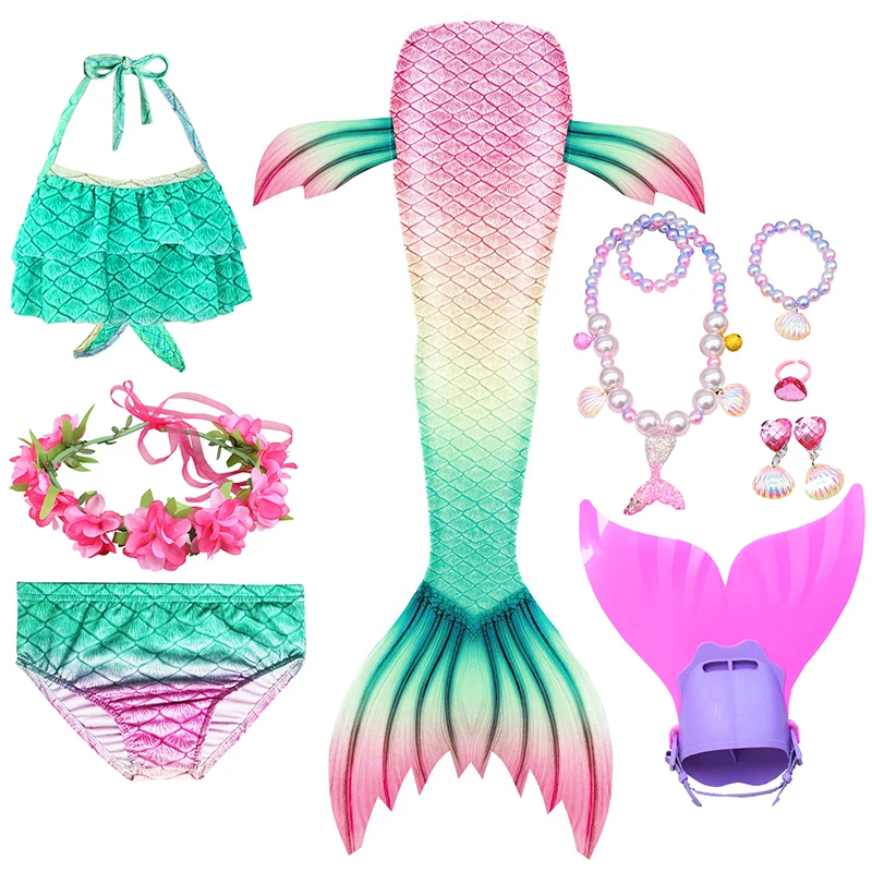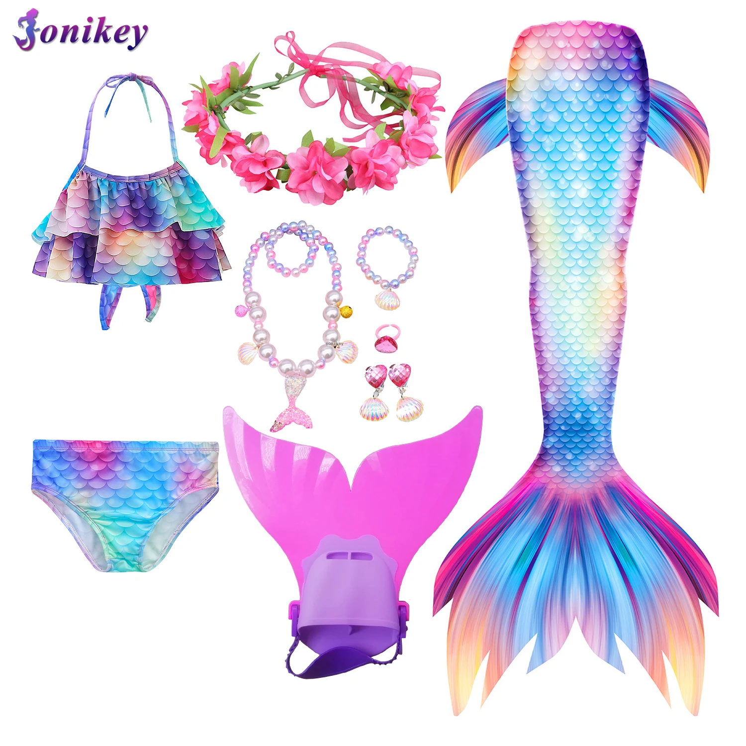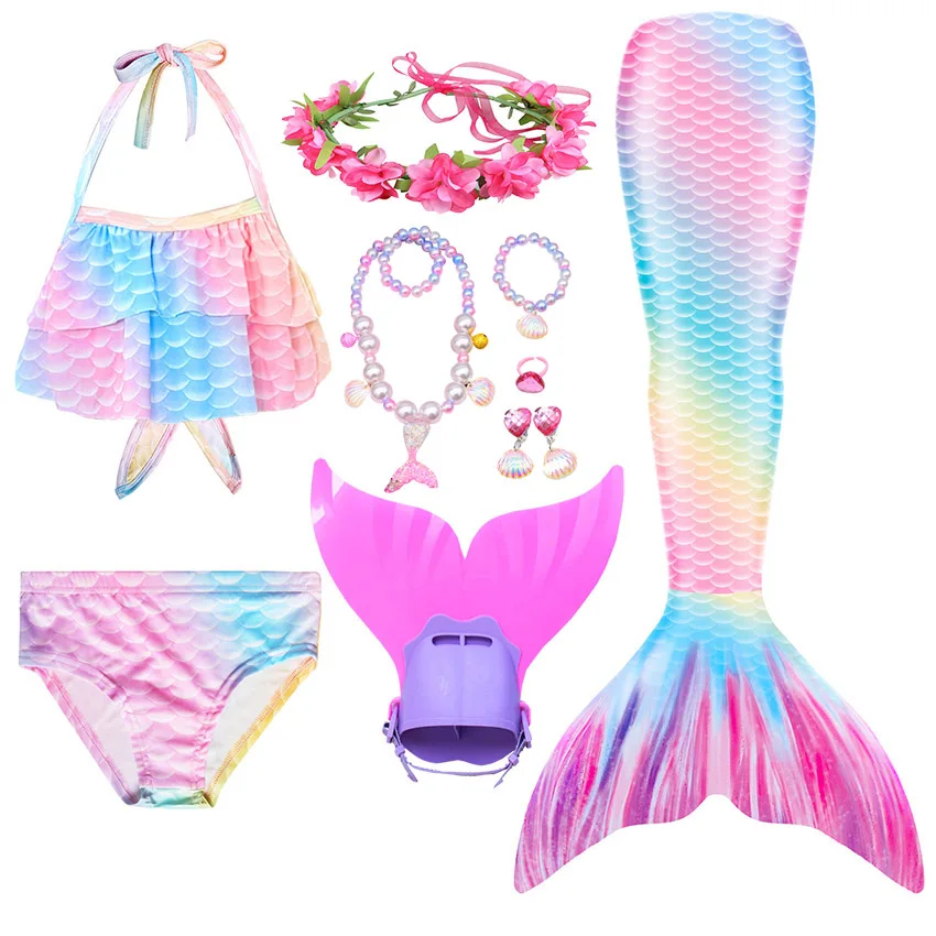 Купальный костюм для девочек с хвостом Русалочки, детский пляжный купальник для косплея, сказочное бикини с моноластами