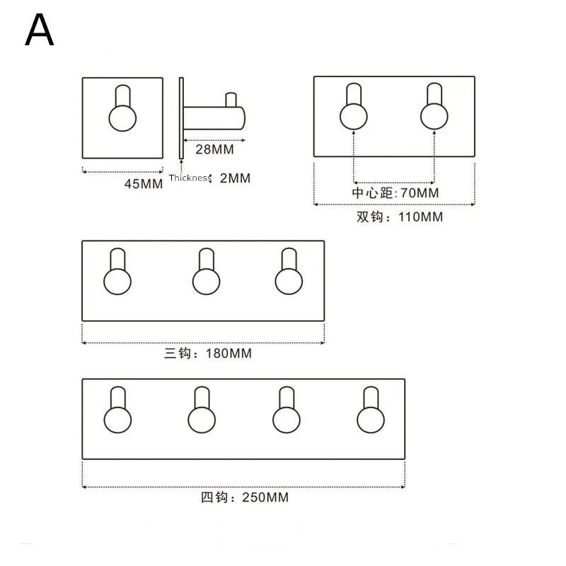 Черный крючок для халата SUS304, настенный крючок, крючок для полотенец для ванной комнаты, крючок для пальто из нержавеющей стали, нержавеющий крючок, вешалка для кухонной фурнитуры