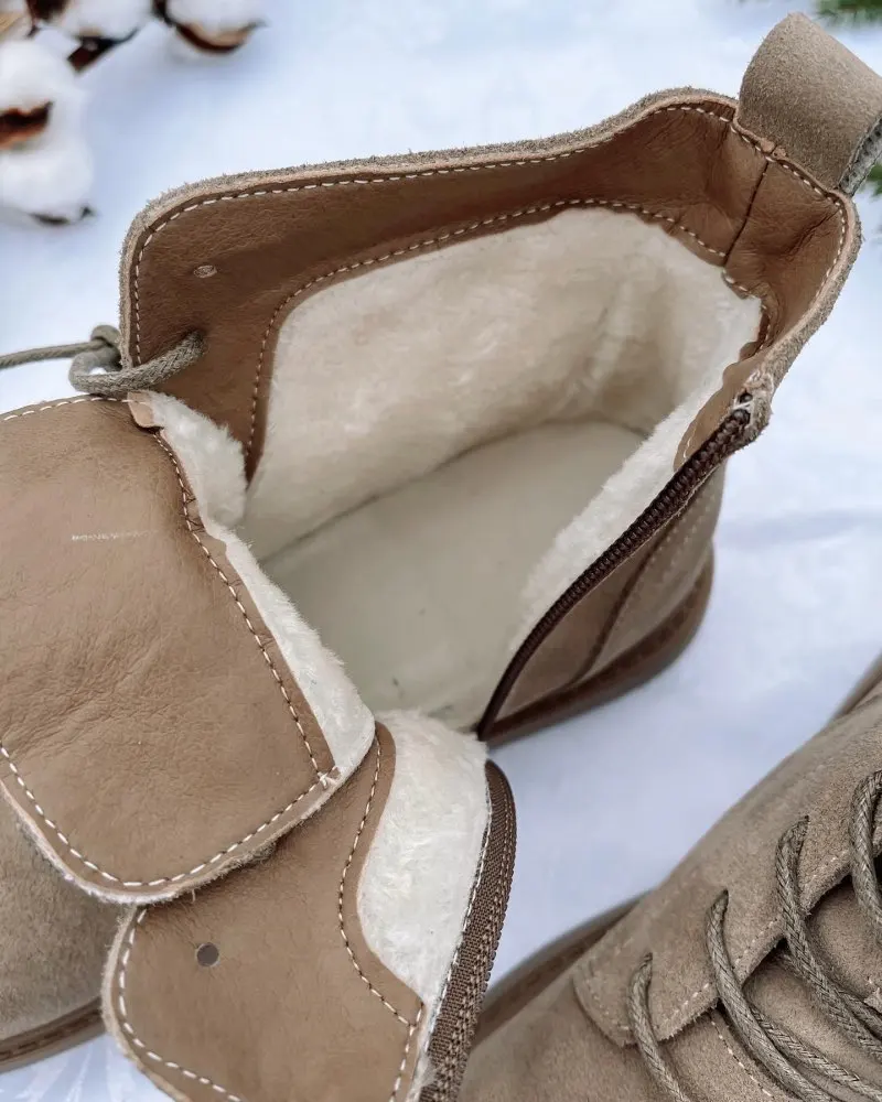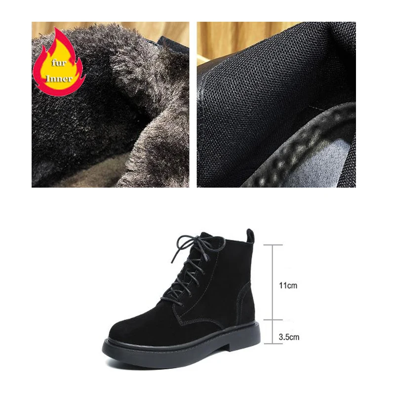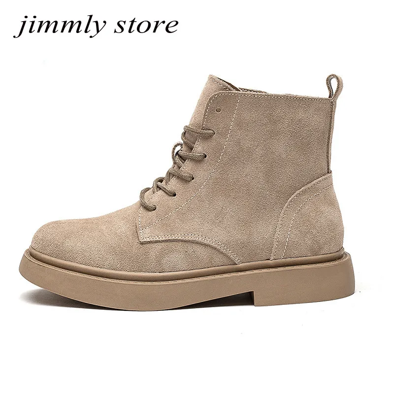 Ботинки женские зимние из коровьей замши, однотонные дезерты, короткие сапоги для мотоцикла