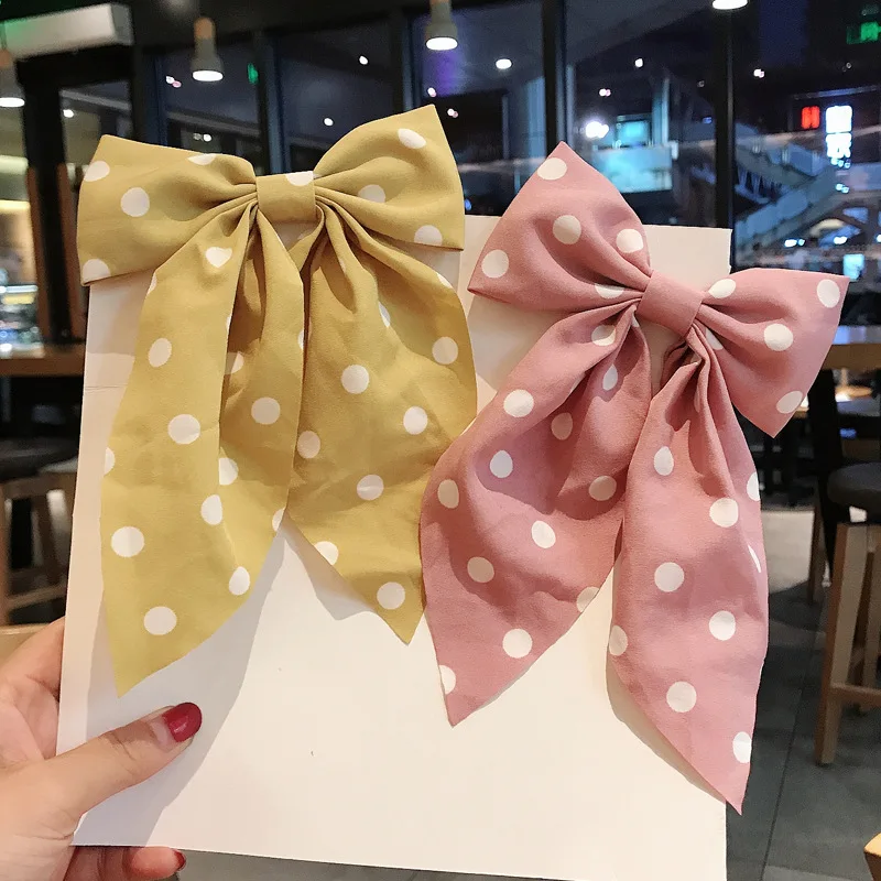 Женская заколка для волос, в горошек, с крупным бантом, Длинная лен...