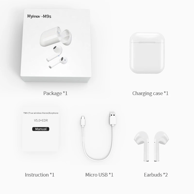Характеристики:1. Версия чипа: Jerry 5,0 6936D2. Функциональная Производительность: Автоматическое включение сопряжения, независимо от мастера и работника, сенсорное управление, хорошее сопряжение, хорошая стабильность и хорошее качество звука.Эксплуатация и использование: два нажатия, чтобы сделать паузу/воспроизведение, тройное нажатие на верхнюю левую песню и следующую правую песню, короткое нажатие в течение 3 секунд, чтобы вызвать функцию голосового ассистента Siri3. Материал: ABS + PC4. Эффективное прямое расстояние: 10 метров5. Рог: импортный композитный алюминиевый кольцевой Рог6. Батарея: полимерный литиевый аккумулятор, наушники 40 мАч, зарядный отсек 300 мАч7. Время воспроизведения: одно ухо: 3-4 ч; Противоположное ухо: 3-4 ч8. Время работы в режиме ожидания: 100 Ч для одного уха, 60 ч для противоположного уха9. Время полной зарядки: около 1 часа для наушников, около 2 часов для зарядного отсека10. Цвет: белый