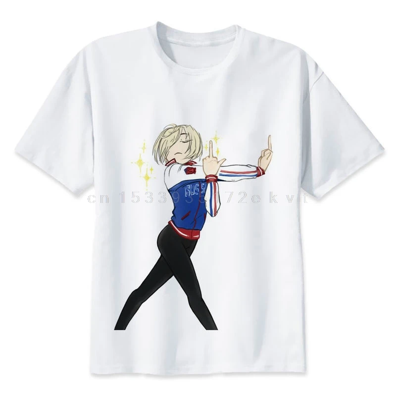 Футболка мужская с рисунком аниме, модная футболка yuri on ice, с круглым вырезом, белая фотография для мужчин, Забавные топы, футболки